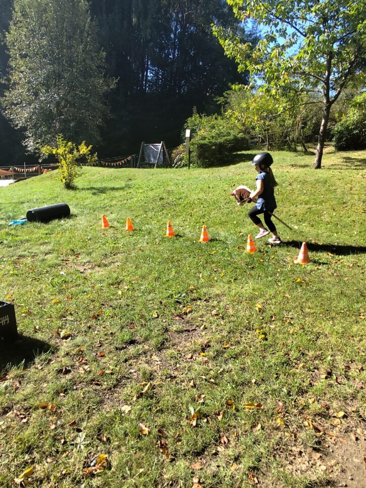 Auf dem Turnier-Parcours warteten spannende Aufgaben: Die Kinder ritten mit ihren Stockpferden über eine Wippe, sprangen über verschiedene Hindernisse und meisterten sogar ein „Wasserhindernis“. Mit viel Freude, Fantasie und sportlichem Ehrgeiz stellten sich die Reiterinnen und Reiter den Herausforderungen.