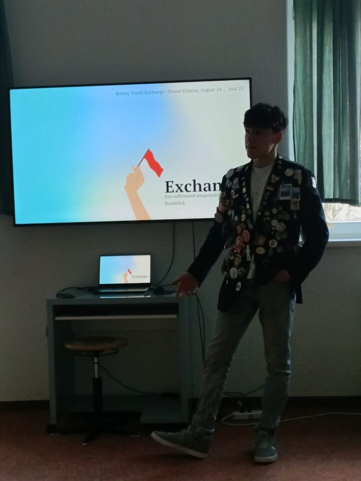 Daniel Khansa (Klasse 11), berichtete am Donnerstag, den 12.03.2026, von seinem Auslandsaufenthalt in Indonesien. Dort zogen in einer Jacke, die an vielen verbrachte er dank der Unterstützung des Rotary-Clubs das letzte Schuljahr. In seinem Vortrag erzählte er – angezogen in einer Jacke, die an die vielen Ereignisse des Jahres erinnerte – von vielen beeindruckenden Sehenswürdigkeiten, Inseln und Ländern, die er während seines Aufenthaltes kennenlernen konnte. Außerdem stellte er das Leben der Menschen in Indonesien vor und erklärte einige kulturelle Besonderheiten. Besonders interessant waren seine Berichte über seine Gastfamilien, bei denen er während der Zeit lebte. Er schilderte, wie herzlich er aufgenommen wurde und wie schnell er sich dort einleben konnte. Der Vortrag war sehr informativ und inspirierend.