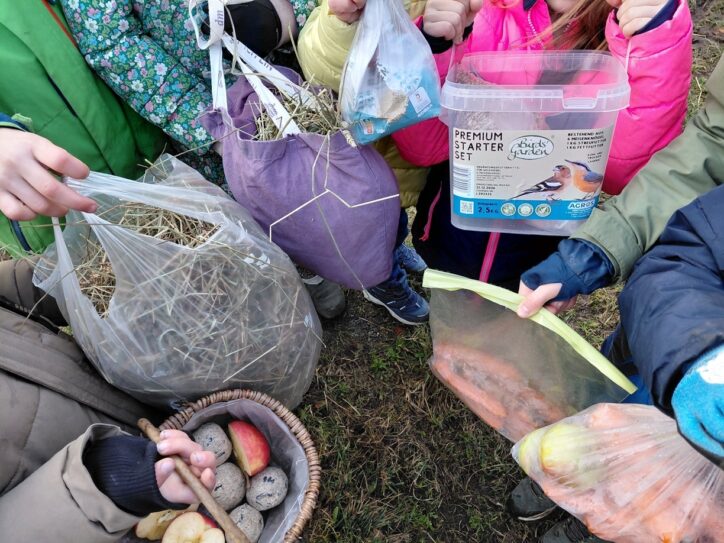 Der Tag begann traditionell mit der Geschichte von Hirsch Heinrich. Gemeinsam gingen wir danach in den Wald. Dort verteilten wir unsere Geschenke für die Tiere. So können sich Vögel, Rehe und andere Waldbewohner im Winter darüber freuen.